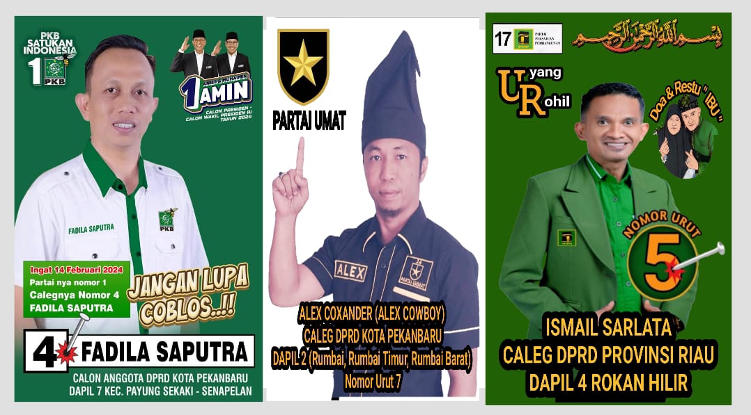 Ismail Sarlata, Fadila Saputra yang akrab disapa Fadil dan Alexander yang akrab disapa Alex Cowboy merupakan 3 (sosok) Insan Pers Riau yang maju dikancah Pileg serentak 2024 walau berbeda partai ini menyatakan sikap untuk Insan Pers dan Masyarakat yang ada di Provinsi Riau.