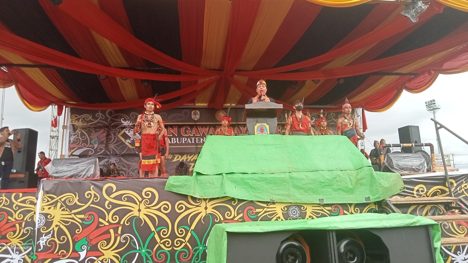 Tokoh Dayak Nasional, yang juga Anggota DPR-RI, Lasarus, S.Ss.,M.Si dalam sambutannya menyampaikan agenda tahunan gawai bagi warga masyarakat dayak merupakan rasa ucapan syukur kepada Tuhan.