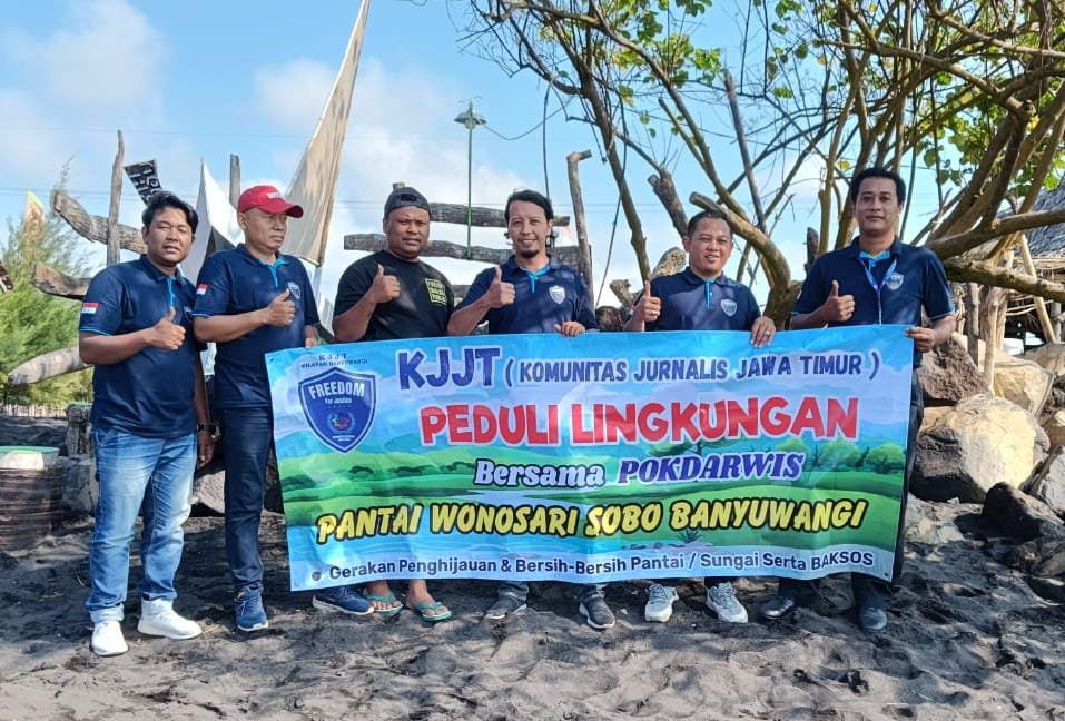 YUTELNEWS.com | BANYUWANGI – Komunitas Jurnalis Jawa Timur (KJJT) wilayah Banyuwangi bersama Pokdarwis Pawon Jaya, sukses menggelar aksi penanaman sekitar 50 bibit pohon cemara di Pantai Wisata Wonosari, Kelurahan Sobo, Kecamatan Banyuwangi, pada Sabtu (15/6/2024) pagi. Aksi penanaman ini dilakukan secara bergotong royong, melibatkan KJJT Banyuwangi, Kelompok Sadar Wisata (Pokdarwis) Pawon Jaya, serta masyarakat setempat.