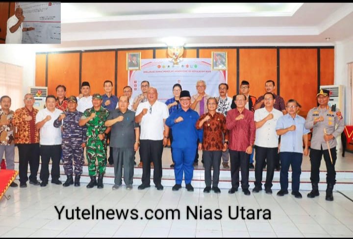 YUTELNEWS.com | Nias Utara- Bupati Nias Utara S.Pd., M.IP., Menghadiri Kegiatan Koordinator Forum Kepala Daerah (FORKADA) Kepulauan Nias, acara Doa Lintas Agama Bersama sekaligus “Deklarasi Menolak Anarkisme” se-Kepulauan Nias. Kegiatan yang berlangsung di ruang rapat lantai II Kantor Wali Kota Gunungsitoli, Kamis (04/09/2025).
