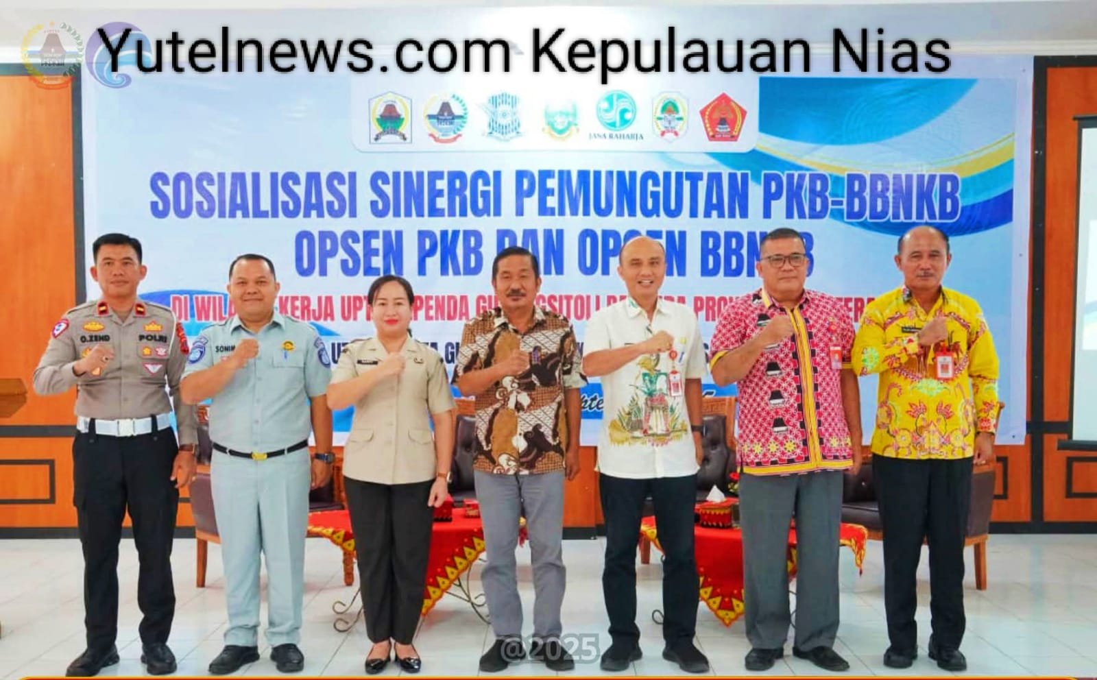 YUTELNEWS.com | Gunungsitoli- Kegiatan Pj. Sekretaris Daerah Meiman Kristian Harefa, S.Sos., MSP., mewakili Wali Kota Gunungsitoli, membuka Sosialisasi Opsen Pajak Kendaraan Bermotor (PKB) dan Opsen Bea Balik Nama Kendaraan Bermotor (BBNKB), bertempat di ruang rapat lantai II Kota Gunungsitoli, Rabu (04/09/2025).