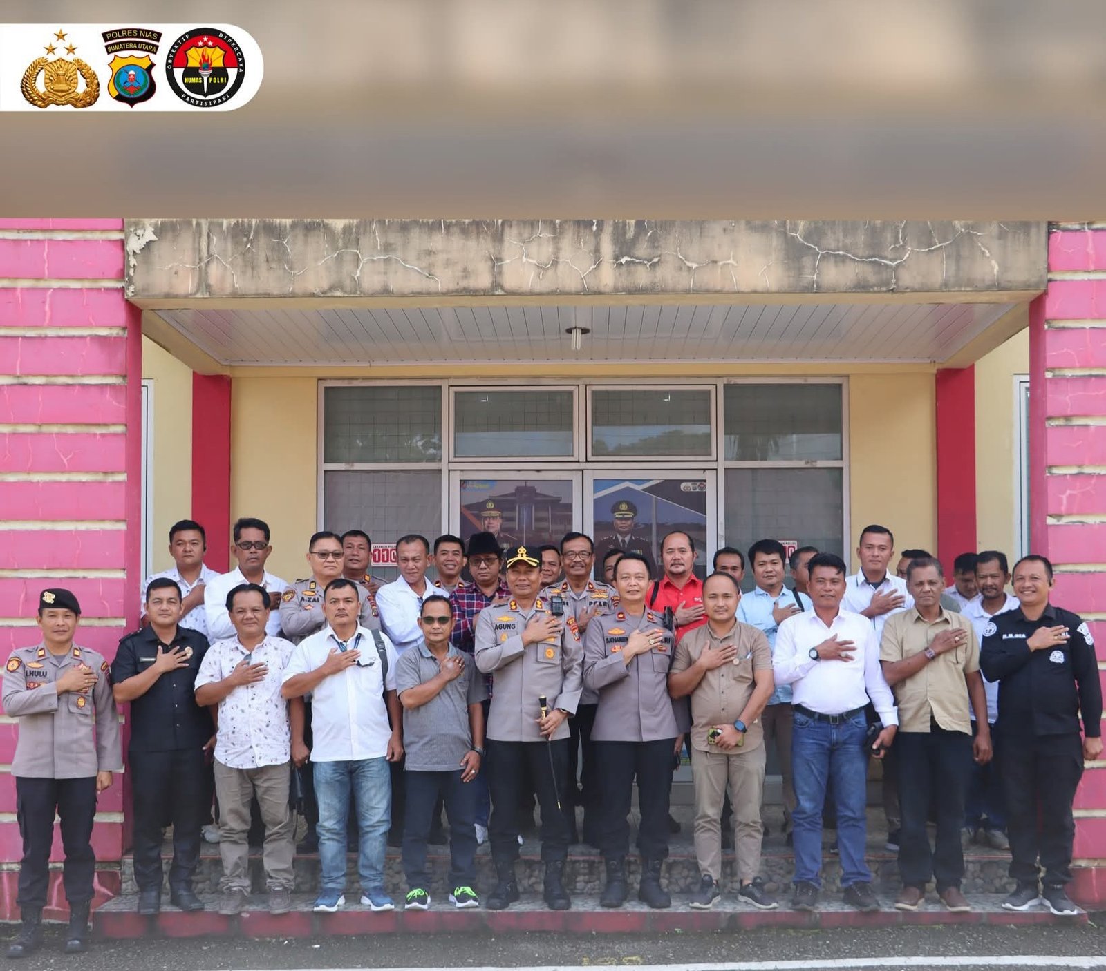 Acara ini turut dihadiri oleh Pejabat Utama (PJU) Polres Nias, termasuk Waka Polres Nias Kompol S.K. Harefa, S.Pd., M.H., serta perwakilan media dari berbagai platform dan personel Si Humas Polres Nias.