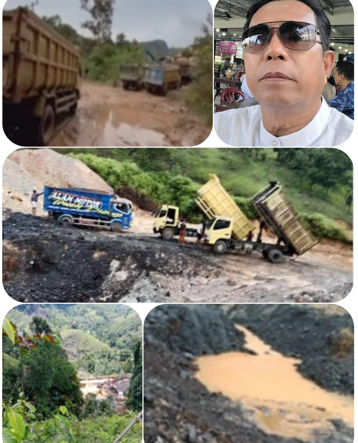 H. Edwar Idrus, tokoh masyarakat, mengeluhkan kerusakan jalan akibat truk batubara over tonase.