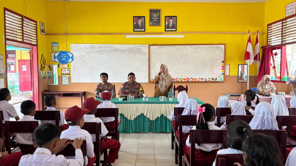 POLICE GO TO SCHOOL Bhabinkamtibmas Polsek Bunguran Barat Edukasi Bahaya Kenakalan Anak di SDN 01 Bunguran Barat Cegah Judi Online dan Narkoba Sejak Dini