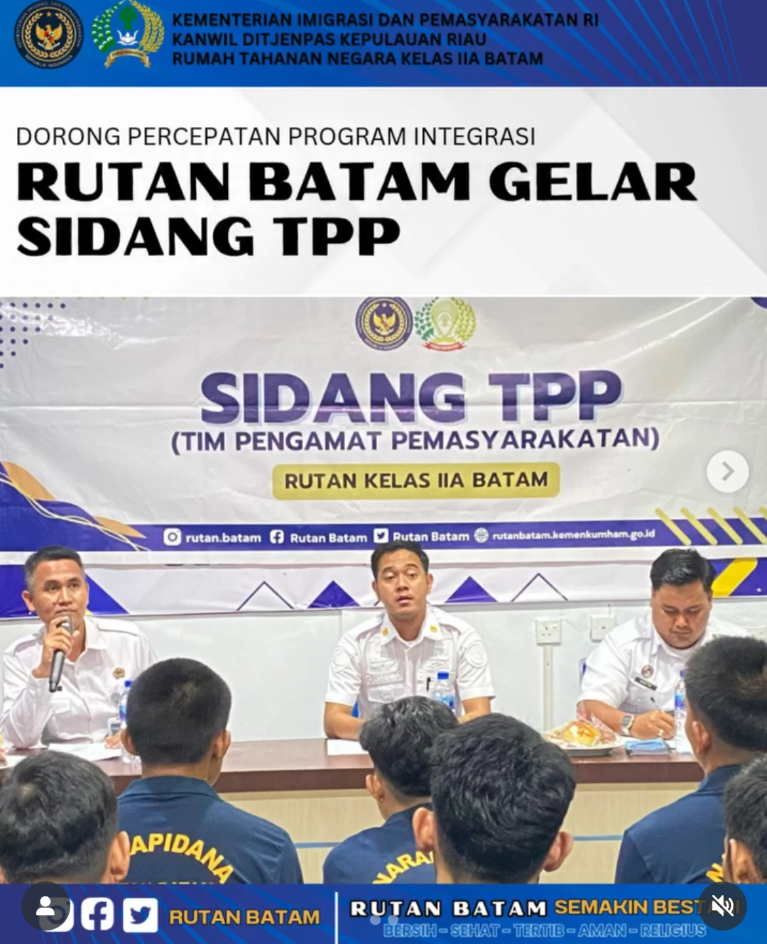 Karutan Batam menegaskan bahwa sidang TPP ini merupakan bagian dari komitmen Rutan Batam untuk memberikan hak-hak WBP secara transparan, objektif, dan sesuai aturan perundang-undangan. “Melalui sidang ini, kami memastikan setiap usulan integrasi berjalan sesuai ketentuan dan mempercepat proses reintegrasi sosial WBP ke masyarakat,” ungkapnya.