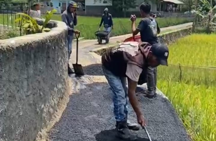 BANDUNG -Yutelnews com|| Pemerintah Desa Karyalaksana Kecamatan Ibun Kabupaten Bandung merealisasikan anggaran dari program produksi panas bumi untuk peningkatan kualitas pembangunan jalan gang dan jalan desa dengan cara dihotmix di desa tersebut.