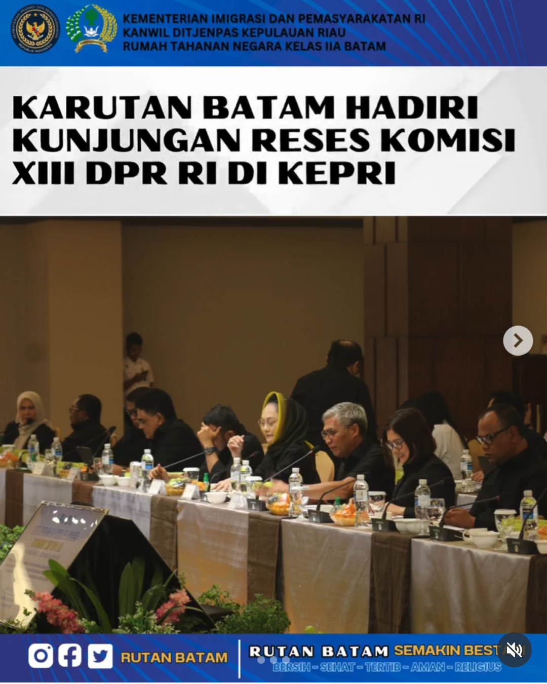 YUTELNEWS.com | Kepala Rumah Tahanan Negara (Rutan) Kelas IIA Batam menghadiri kegiatan kunjungan reses Komisi III DPR RI di Provinsi Kepulauan Riau. Kunjungan ini bertujuan untuk melakukan kontrol dan evaluasi terhadap kinerja mitra kerja Komisi XIII, khususnya di bidang Hukum HAM Imigrasi dan Pemasyarakatan.