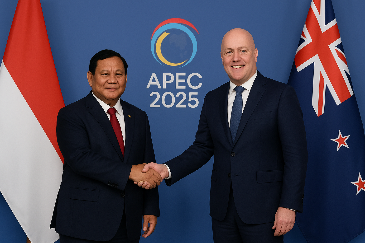 Foto ilustrasi: AI / YutelNews.com – menggambarkan suasana pertemuan diplomatik Presiden Prabowo Subianto dengan PM Selandia Baru Christopher Luxon pada KTT APEC 2025 di Gyeongju, Republik Korea.