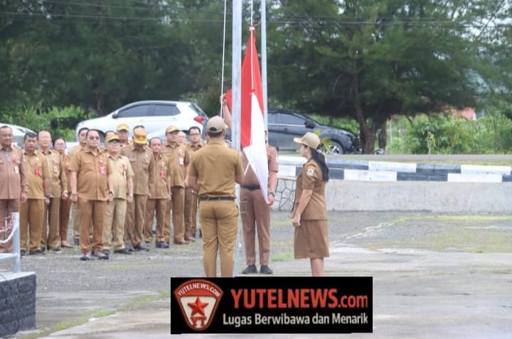 Sekda Kab.Nias Utara melaksanakan Penaikan Bendera Merah Putih