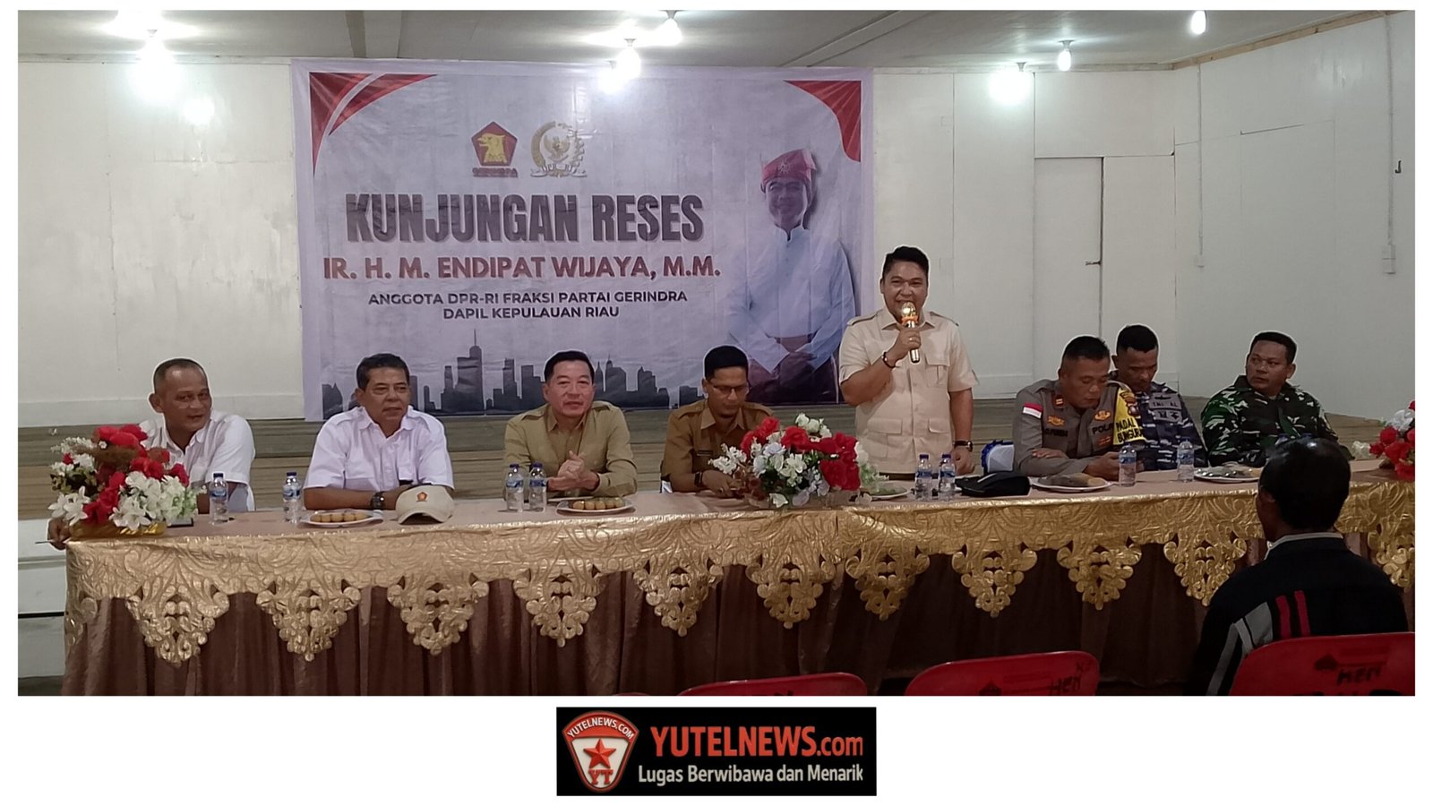 Kegiatan reses Anggota DPR RI Dapil Kepulauan Riau, Ir. H. M. Endipat Wijaya, M.M., bersama Ketua DPRD Provinsi Kepri, Iman Setiawan, berlangsung di Kelurahan Sedanau, Kecamatan Bunguran Barat, Selasa (18/11/2025). Agenda ini dirangkaikan dengan penyaluran 1.000 paket sembako untuk masyarakat Kecamatan Bunguran Barat.