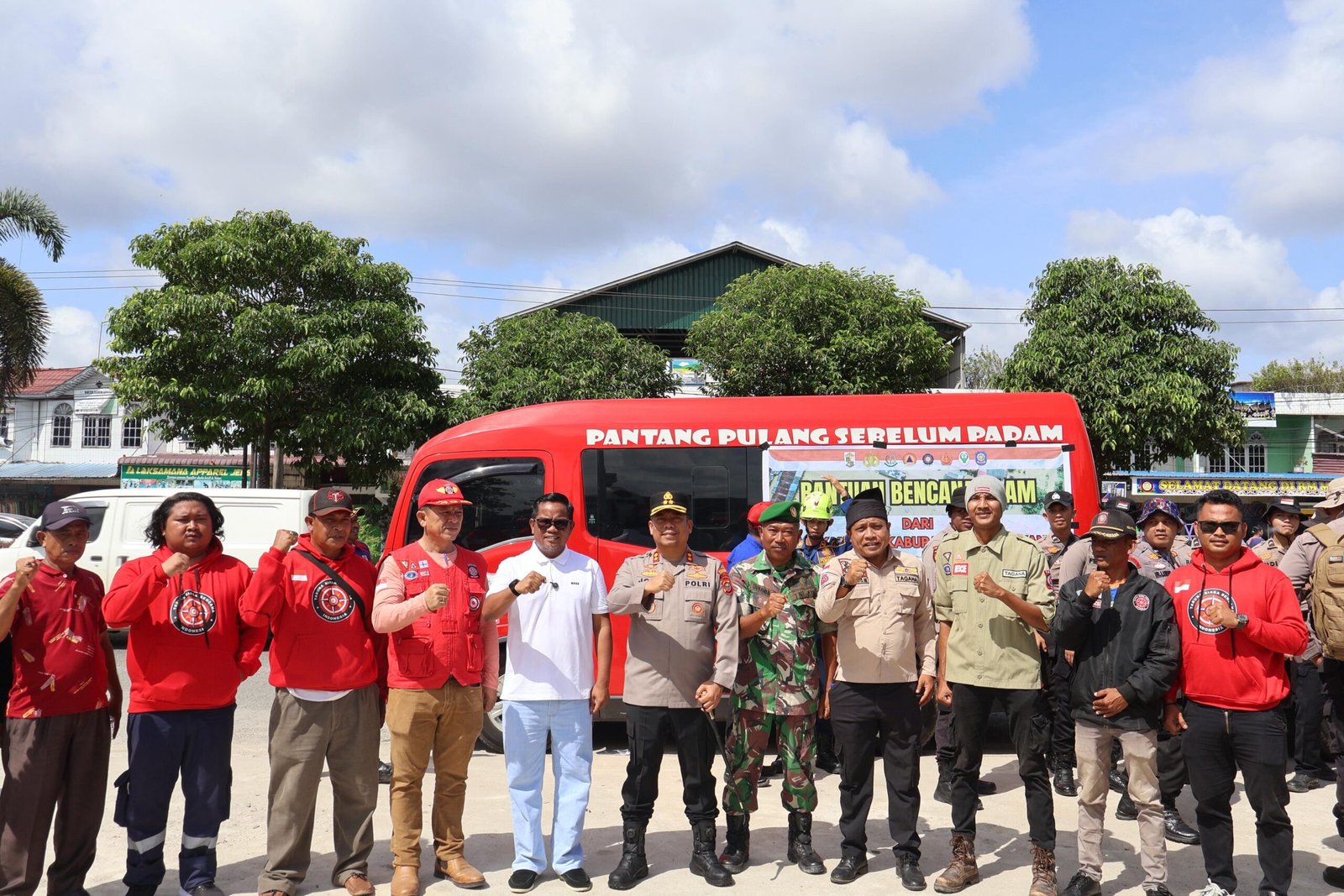 Tim Relawan Bantuan Bencana Alam yang berangkat menuju lokasi bencana di Prov. Sumatra Barat terdiri dari Polres Pelalawan 11 dipimpin oleh AKP Wel Etria, SH, M.H, IPTU Muslim SH dan IPTU Renius Sinaga dan 8 orang lagi terdiri dari Bintara dan 8 Personil, Damkar Kab. Pelalawan 5 orang, BPBD Kab. Pelalawan 6 orang, Tagana Kab. Pelalawan 5 orang, dan Ikatan Keluarga Tanah Datar (IKTD) Kab. Pelalawan 30 orang.