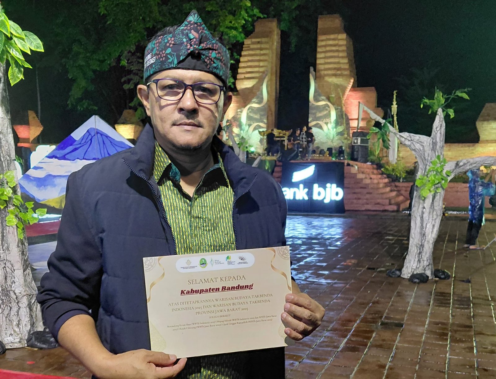 KAB BANDUNG – Pemerintah Kabupaten (Pemkab) Bandung diwakili Kepala Dinas Kebudayaan (Disbud) Kabupaten Bandung Irvan Ahmad, menerima Penghargaan Warisan Budaya Tak Benda (WBTb) dalam malam puncak Pekan Kebudayaan Daerah Jawa Barat tahun 2025 di Kota Cirebon, Sabtu (13/12/2024) malam.
