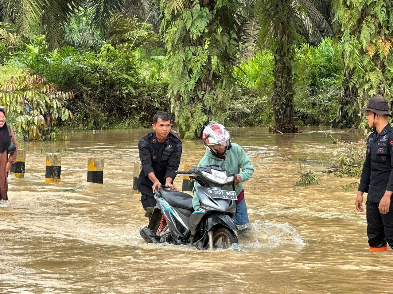 Setibanya di lokasi, personel Brimob bersama tim gabungan dari Polsek Batang Gangsal langsung melaksanakan patroli serta pengaturan arus lalu lintas di sepanjang jalur yang tergenang air. Langkah ini dilakukan guna mencegah terjadinya kecelakaan lalu lintas, memastikan keselamatan pengguna jalan, serta menjaga kelancaran mobilitas masyarakat yang melintasi jalur vital tersebut.