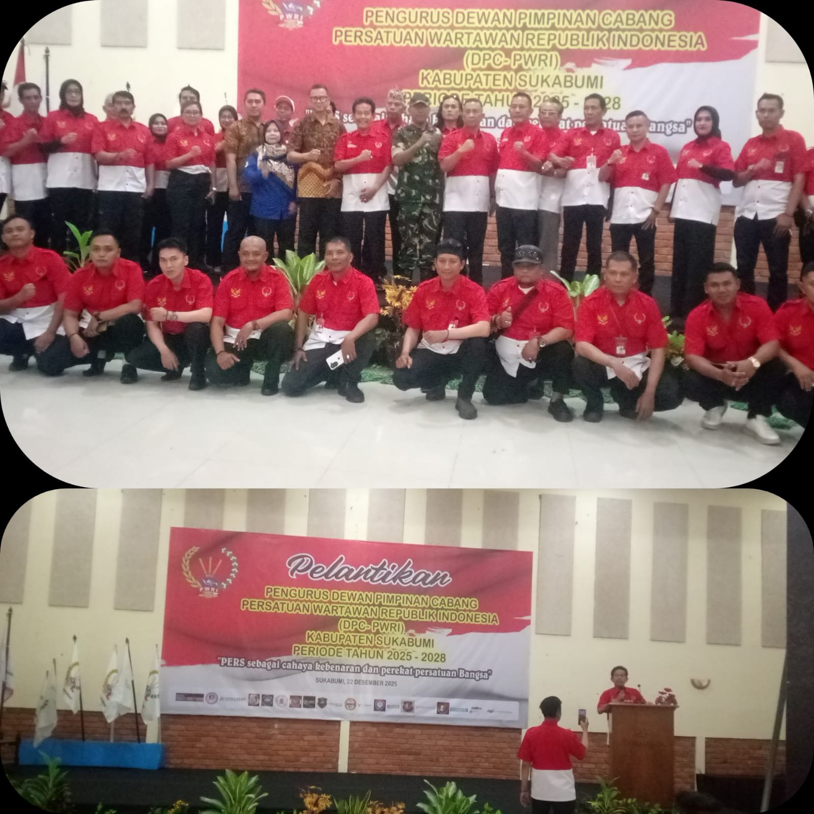 YUTELNEWS.com – Sukabumi ,Dewan Pimpinan Cabang Persatuan Wartawan Republik Indonesia (DPC PWRI) Kabupaten Sukabumi resmi melantik jajaran pengurus baru untuk periode 2025–2030. Pelantikan digelar khidmat di Aula Agusta, Jalan Cikukulu, Desa Cijalingan, Kecamatan Cantayan, Kabupaten Sukabumi, Senin (22/12/2025).