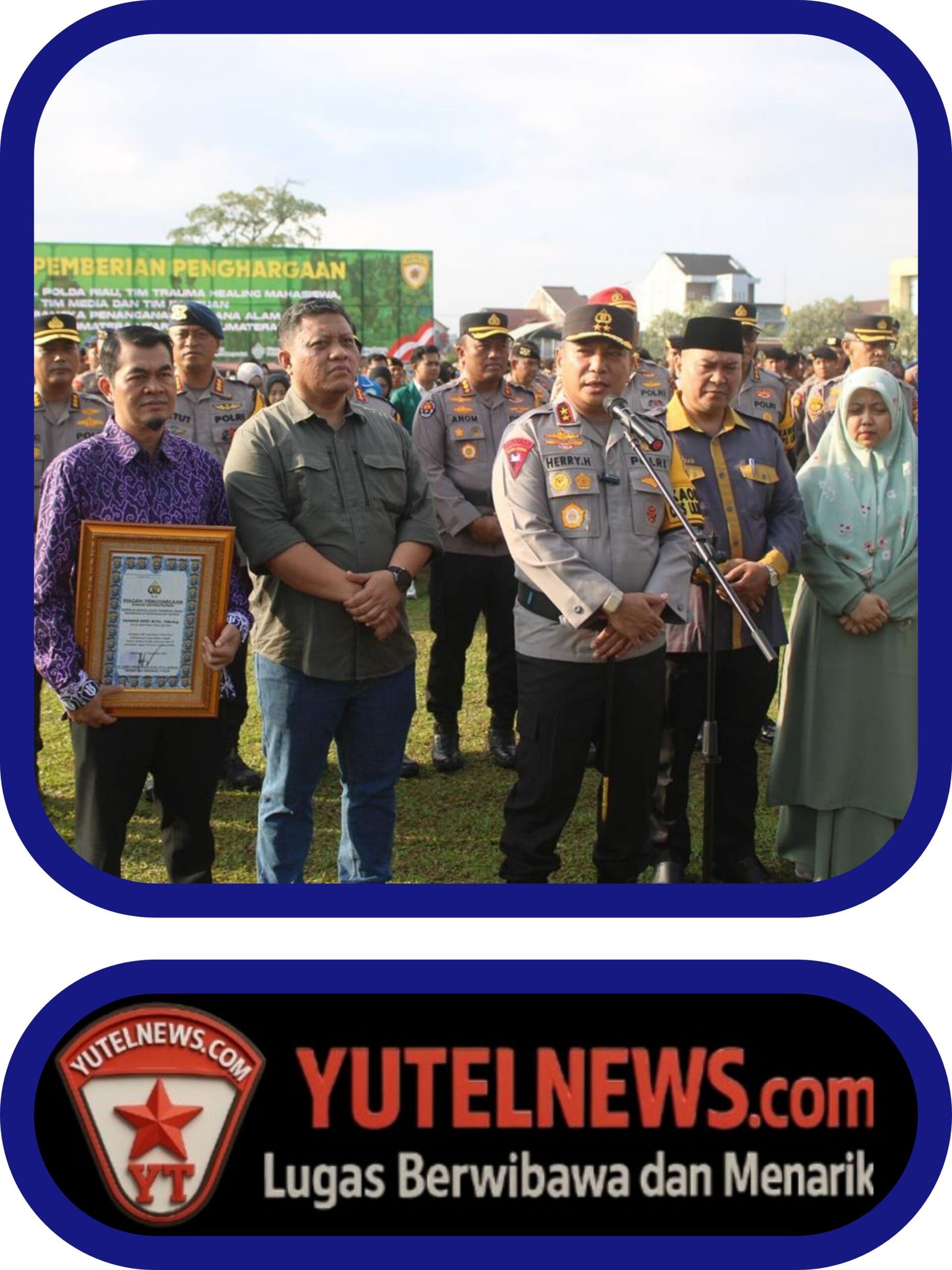 Upacara pemberian penghargaan digelar di halaman apel Mapolda Riau, Selasa (23/12/2025), dan dipimpin langsung oleh Kapolda Riau Irjen Pol. Dr. Herry Heryawan, S.I.K., M.H., M.Hum.