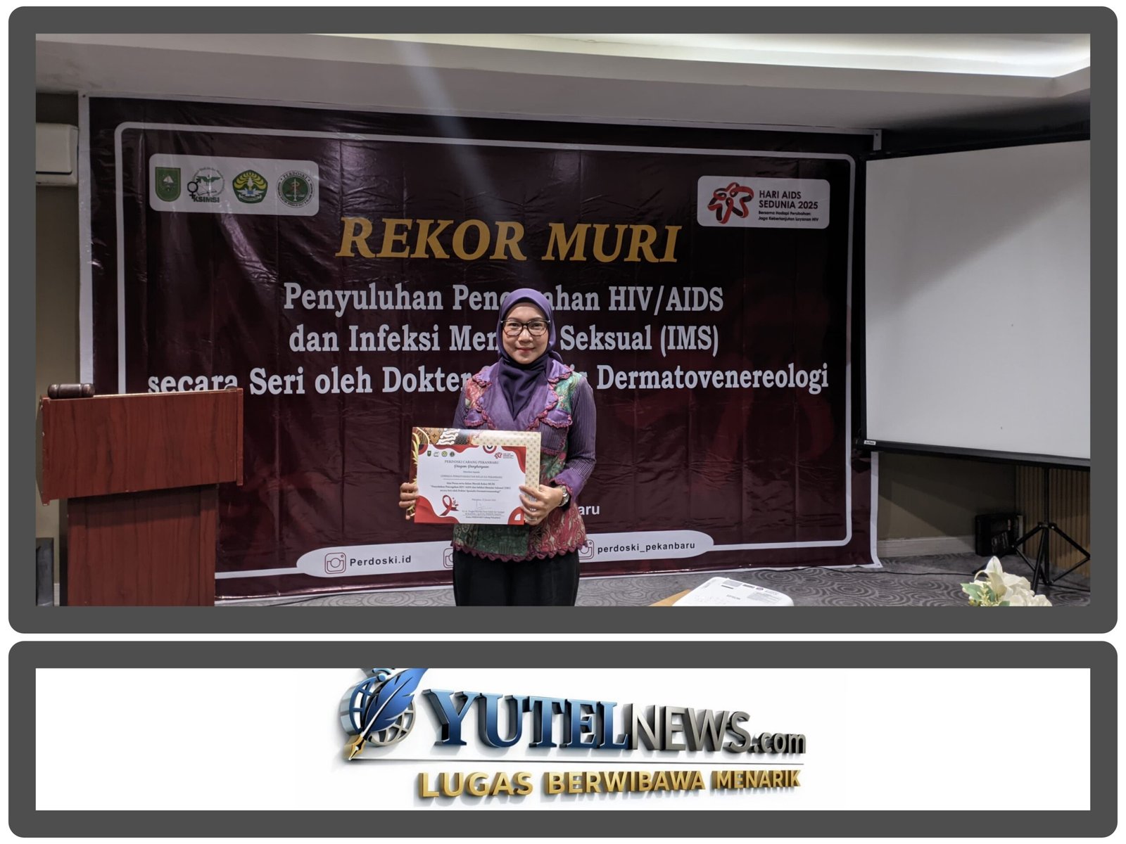 YUTELNEWS.com – Pekanbaru || Lembaga Pemasyarakatan (Lapas) Kelas IIA Pekanbaru bersama Perhimpunan Dokter Spesialis Kulit dan Kelamin Indonesia (PERDOSKI), sejumlah lembaga pemerintah, serta berbagai pihak terkait lainnya berhasil mencatatkan capaian Rekor Museum Rekor-Dunia Indonesia (MURI) melalui kegiatan penyuluhan pencegahan HIV/AIDS dan Infeksi Menular Seksual (IMS). Pemerintah Provinsi Riau hadir sekaligus memberikan sambutan dalam agenda penyerahan piagam yang digelar di Hotel Tjokro Pekanbaru, Senin (26/1/2026).