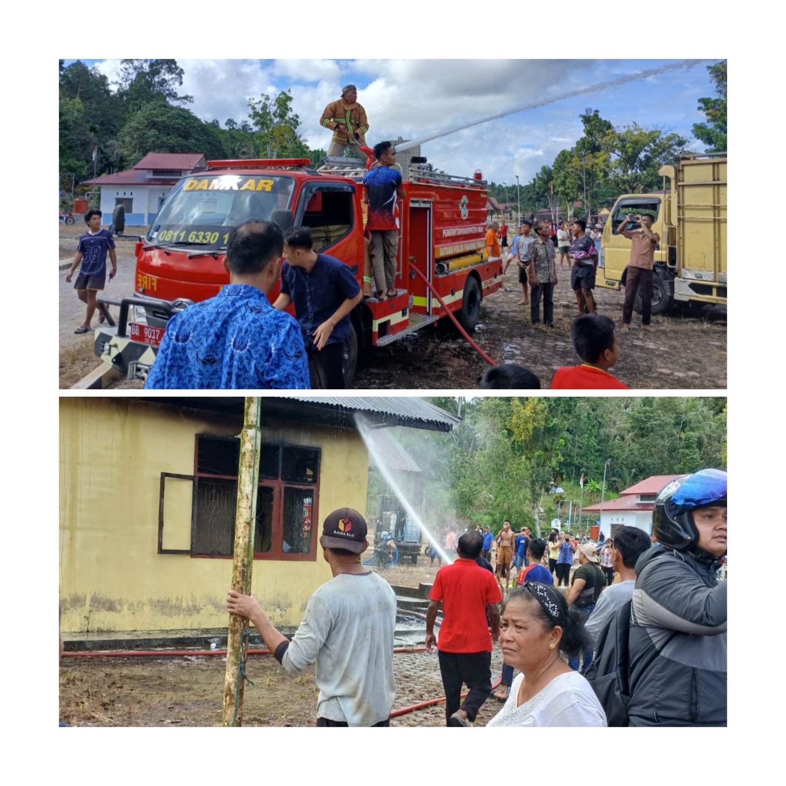 YUTELNEWS.com | Kabupaten Nias, satu unit rumah dinas yang berada di kompleks Kantor Camat Bawalato, Kabupaten Nias, terkena kebakaran pada pukul 14:50 WIB. Api dengan cepat melalap bagian atap bangunan , namun berkat kerja sama petugas pemadam kebakaran dan warga sekitar, api berhasil dipadamkan. (29/1/2026)