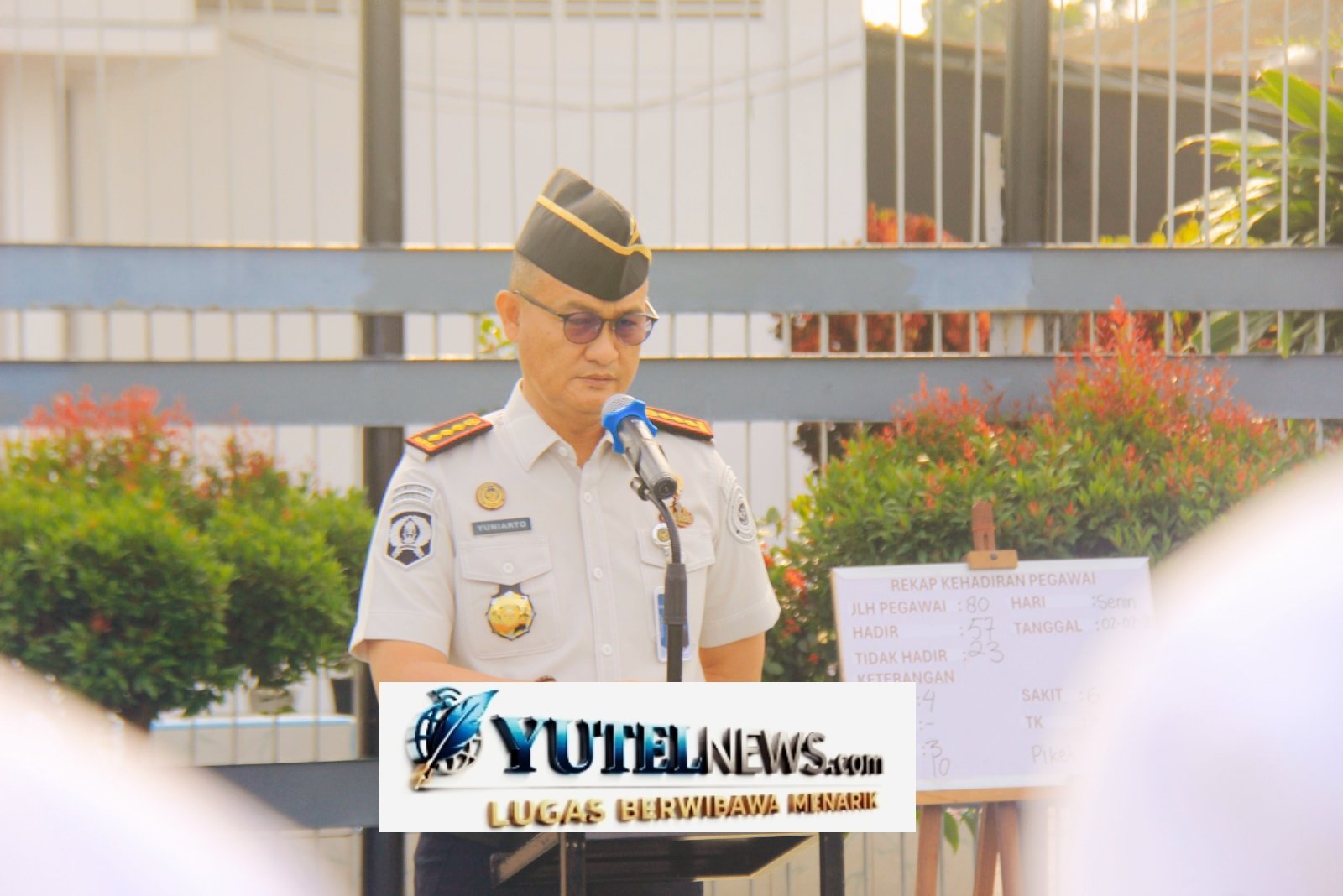 Apel ini dipimpin langsung oleh Kepala Lembaga Pemasyarakatan (Kalapas) Kelas IIA Pekanbaru, Yuniarto diikuti oleh seluruh jajaran pejabat struktural, staf, hingga pegawai magang.