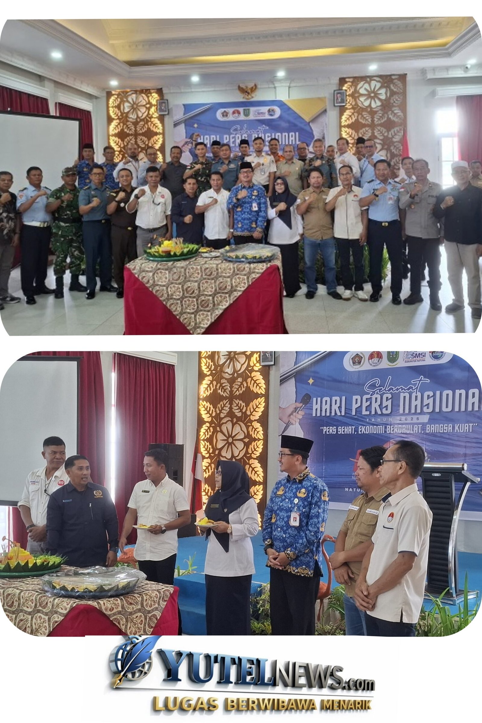 Mewakili Pemerintah Kabupaten Natuna, Sekretaris Daerah (Sekda) Natuna Boy Wijanarko menghadiri peringatan Hari Pers Nasional (HPN) 2026 di Kabupaten Natuna yang digelar pada Senin, 9 Februari 2026, menggaungkan tema “Sehat, Ekonomi Berdaulat, Bangsa Kuat”. Kegiatan berlangsung khidmat dan penuh kebersamaan, serta dihadiri unsur Forkopimda, perwakilan OPD, instansi vertikal, dan berbagai organisasi profesi jurnalis di Natuna.