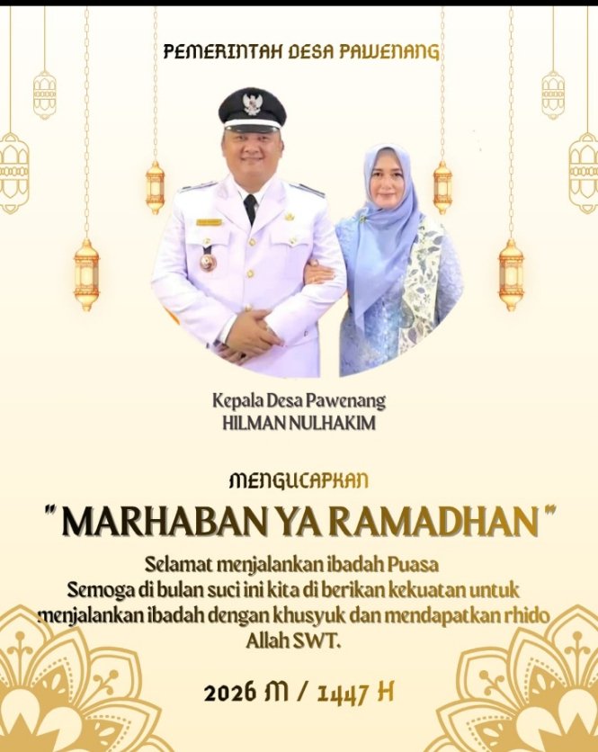 YUTELNEWS.com | Sukabumi Pawenang ,Menyambut datangnya bulan suci Ramadhan 1447 Hijriah, Kepala Desa Pawenang, Hilman Nulhakim, menyampaikan ucapan selamat kepada seluruh masyarakat Desa Pawenang. Ucapan tersebut disampaikan sebagai bentuk rasa syukur sekaligus ajakan kepada seluruh warga untuk menyambut bulan penuh berkah dengan hati yang bersih, penuh keikhlasan, dan semangat memperbaiki diri. Selasa ( 17/2/2026 ),