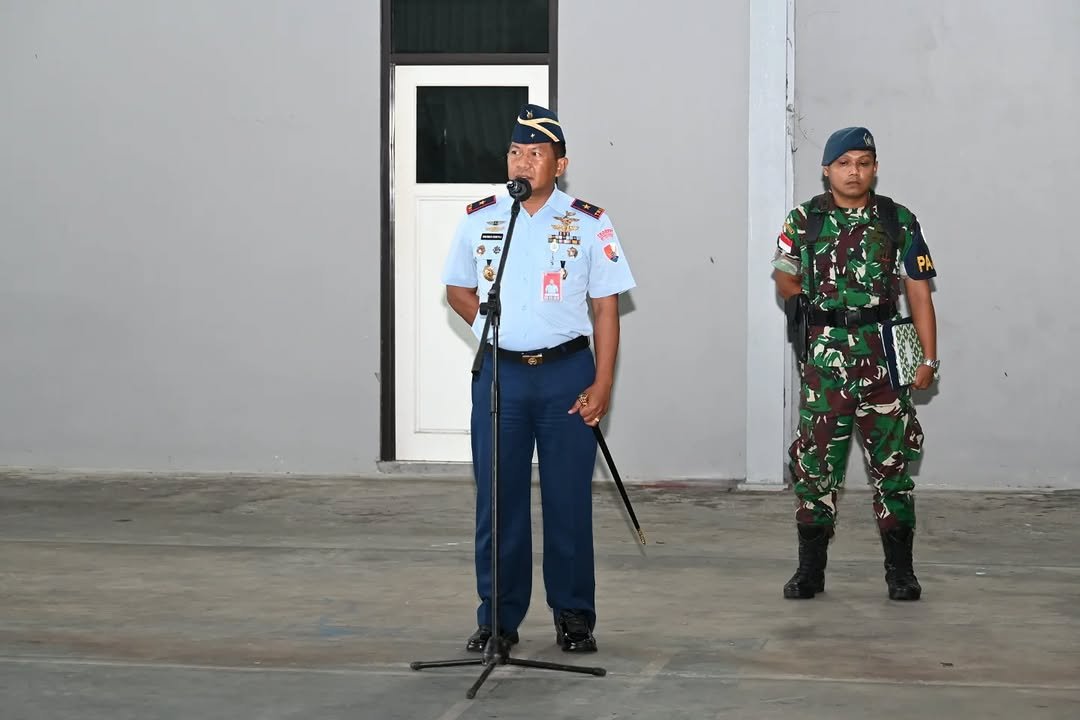 YUTELNEWS.com | Komandan Lanud Raden Sadjad (Danlanud RSA) Natuna, Marsekal Pertama TNI Onesmus Gede Rai Aryadi, S.E., M.M., M.Han., menerima buku berjudul Just Another Brick in the Wall karya Djoko Suyanto, Senin (23/2/2026).