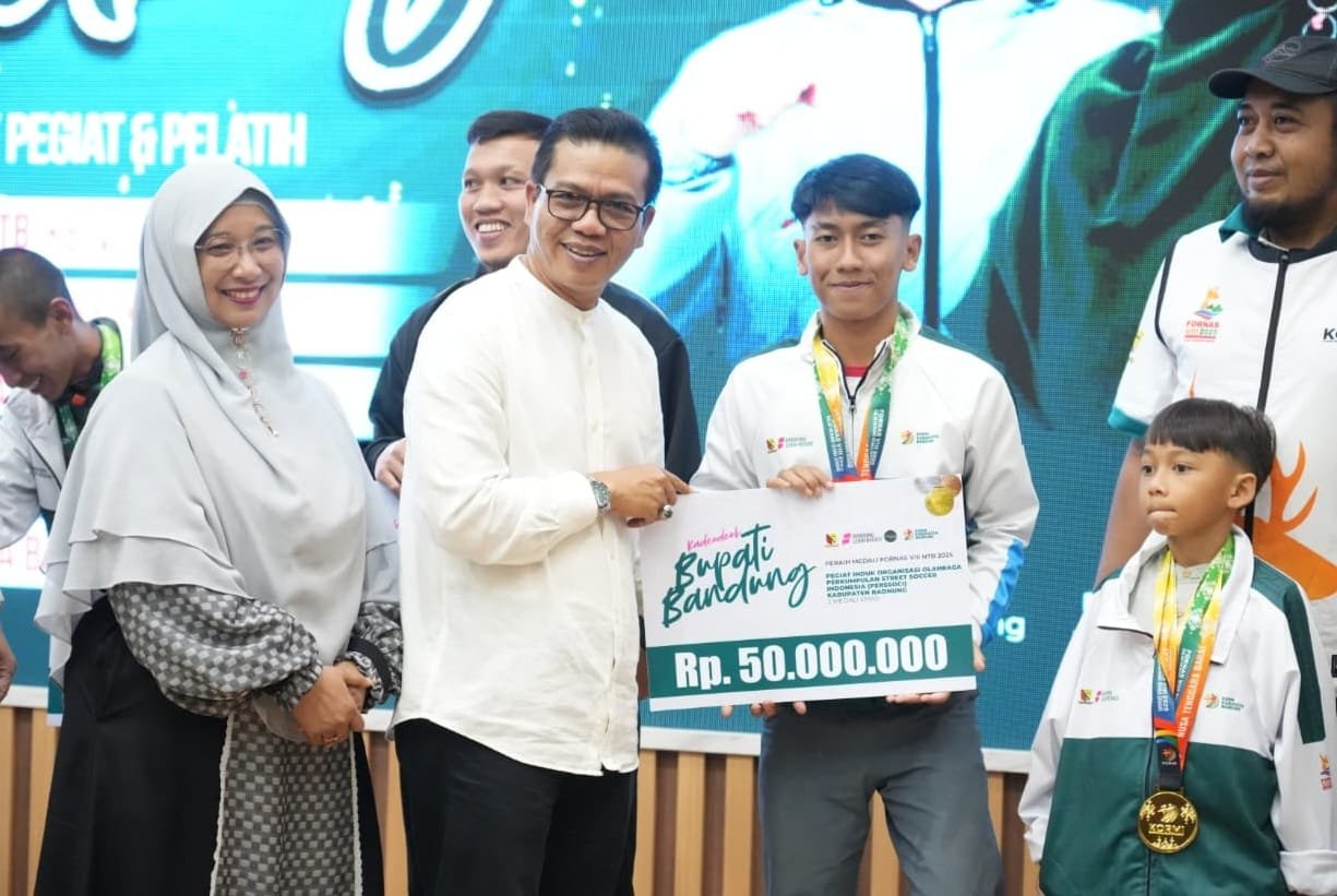 “Pada ajang FORNAS VIII NTB 2025, Kabupaten Bandung berhasil meraih 26 medali emas, 15 medali perak, dan 19 medali perunggu. Atas capaian tersebut, Kabupaten Bandung juga mendapat penghargaan langsung dari Gubernur Jawa Barat sebagai kabupaten penyumbang medali terbanyak,” ujar Emma.