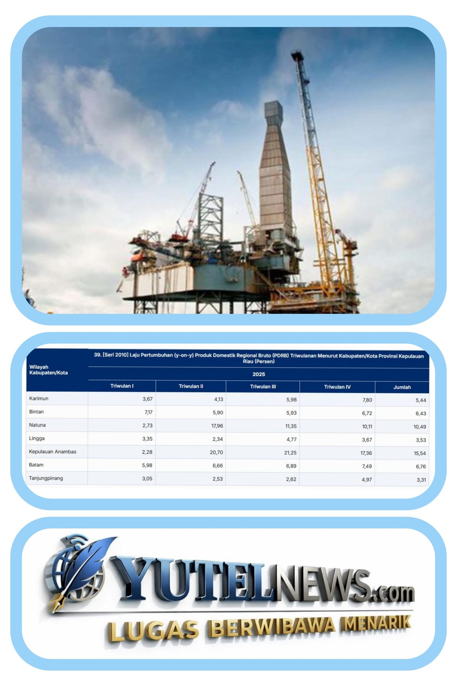 YUTELNEWS.COM – ANAMBAS || Pertumbuhan ekonomi Kabupaten Kepulauan Anambas pada tahun 2025 mencatat capaian tertinggi di Provinsi Kepulauan Riau. Berdasarkan data Badan Pusat Statistik, pertumbuhan ekonomi daerah perbatasan tersebut mencapai 15,54 persen secara year on year (YoY).