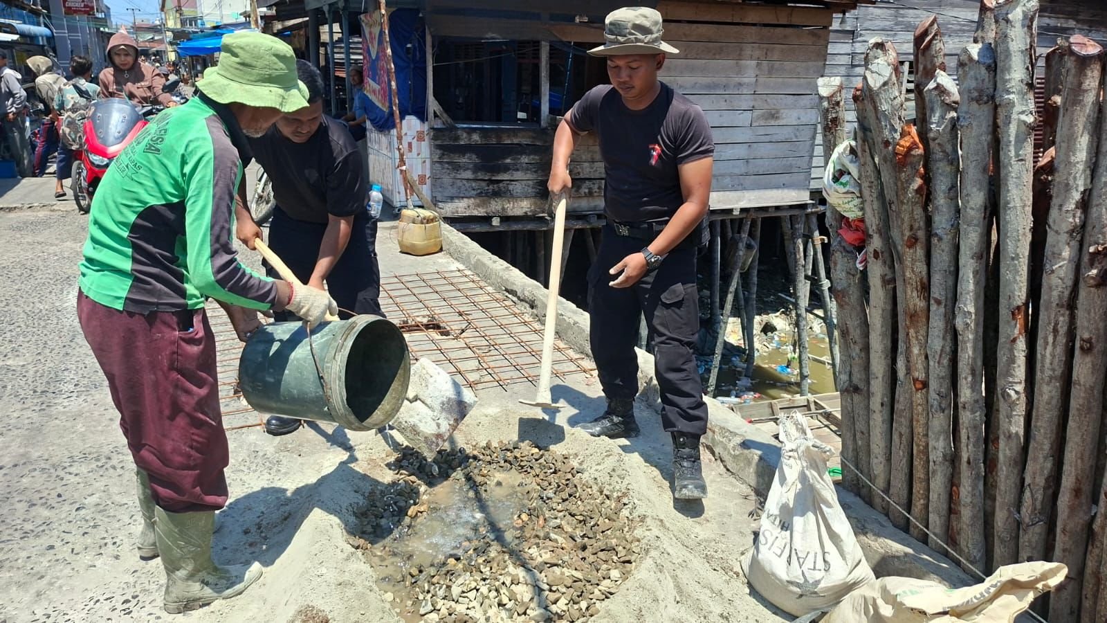 Brimob Polda Riau dan Polres Rohil Gotong Royong di Panipahan, Wujud Nyata Kepedulian Polri