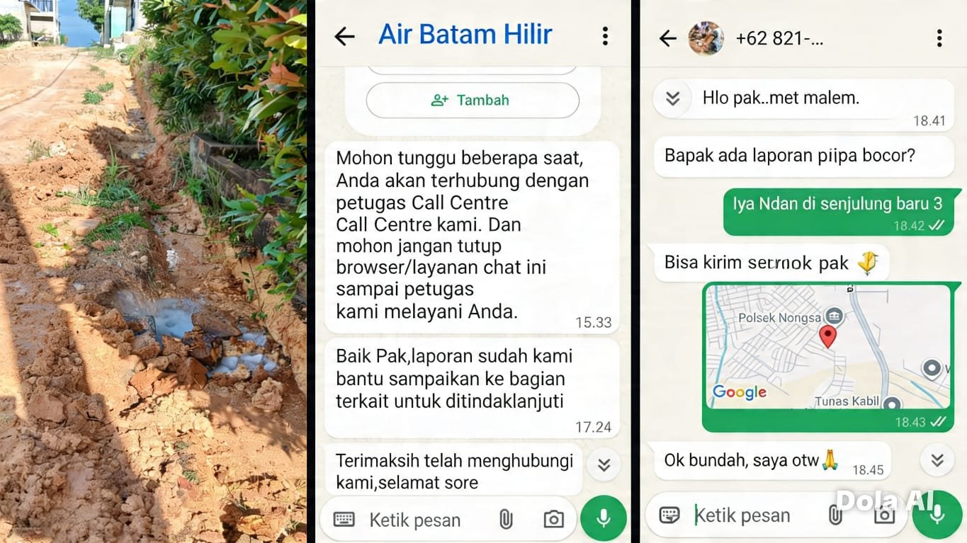 Seorang relawan JPKP yang berada di lokasi segera melakukan penanganan awal dengan menutup titik kebocoran menggunakan batu besar untuk mengurangi debit air, sekaligus melaporkan kejadian kepada layanan pengaduan resmi ABH melalui WhatsApp di +62 811-7780-155.