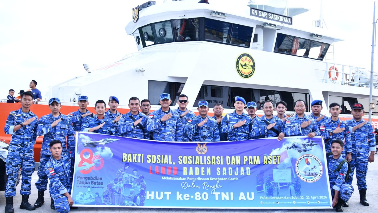Lanud Raden Sadjad (RSA) Natuna menggelar bakti sosial terpadu di Kecamatan Serasan, Kabupaten Natuna, Rabu (22/4/2026), sebagai bagian dari penguatan pelayanan publik di wilayah perbatasan.