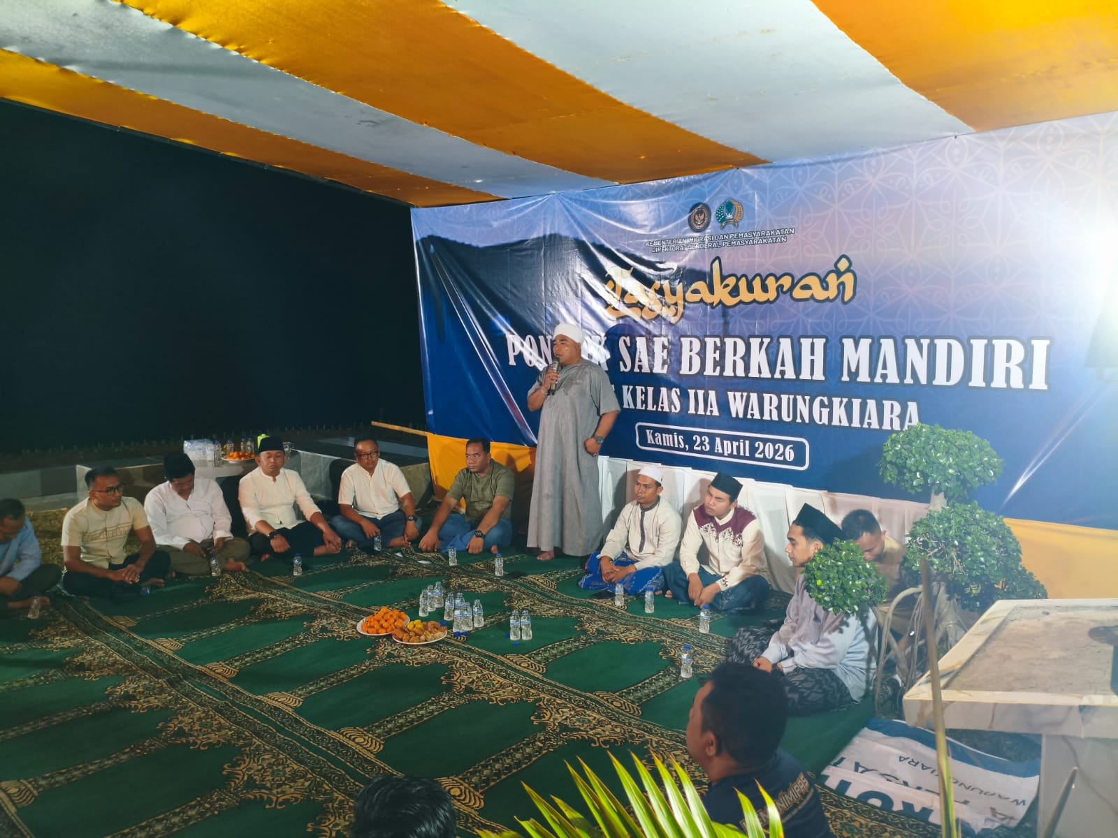 Kegiatan yang berlangsung di lingkungan Pondok SAE Berkah Mandiri ini dimulai pukul 19.00 WIB dan dihadiri langsung oleh Kepala Lapas Kelas IIA Warungkiara, Kurnia Panji Pamekas, beserta jajaran pejabat struktural, petugas, CPNS, hingga peserta magang.