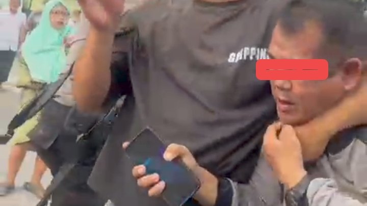 Dalam video yang beredar di media sosial, terduga pelaku disebut sebagai anggota polisi karena mengenakan kaos bertuliskan “Polri”.